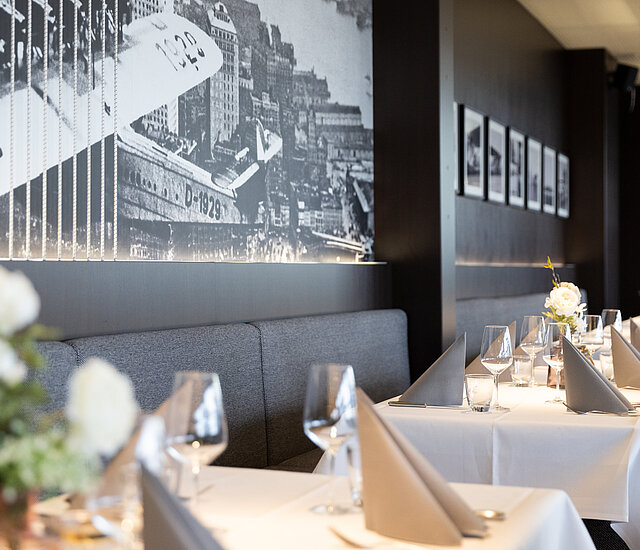 Der Ausblick ist einmalig, die Küche auch! Erleben Sie als Passagier des DO-X Restaurants kulinarische Köstlichkeiten mit Blick auf die Rollbahn des Flughafens und den Zeppelinhangar. Nehmen Sie sich eine Auszeit vom Trubel des Alltäglichen beim Mittagstisch, lassen Sie den Museumsbesuch bei Kaffee und Kuchen auf sich wirken oder läuten Sie mit einem ausgiebigen Frühstücksbuffet den Sonntag ein. Egal für was Sie sich entscheiden, das DO-X Restaurant ist der perfekte Ort, um die Seele baumeln und sich verwöhnen zu lassen – und ganz nebenbei ist der Blick auf startende und landende Passagierflugzeuge und Zeppeline ein Highlight für Groß und Klein.